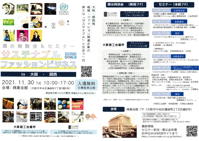 来る11月30日(火)大阪 綿業会館にて「サステナブル・ファッションビジネス in大阪・関西」が開催されます。